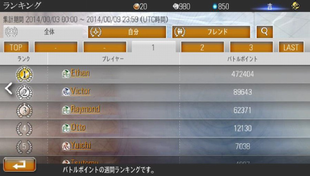 於任務中獲得的「戰鬥點數」之總和排行榜,也將以