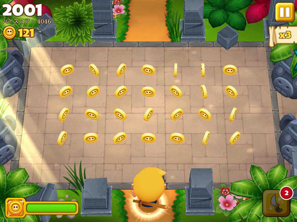 探險的過程中也會有許多的強化道具掉落在地上,這些道具都會以硬幣的方式呈現出來,只要點擊後就會暫時裝備在角色身上。像是拿到大槌子的話火球就會變藍色的,不僅不會攻擊玩家同時也能將它破壞掉。還有金幣型的強化道具,在效果時間內每個區域都只會出現金幣讓玩家撿到爽。