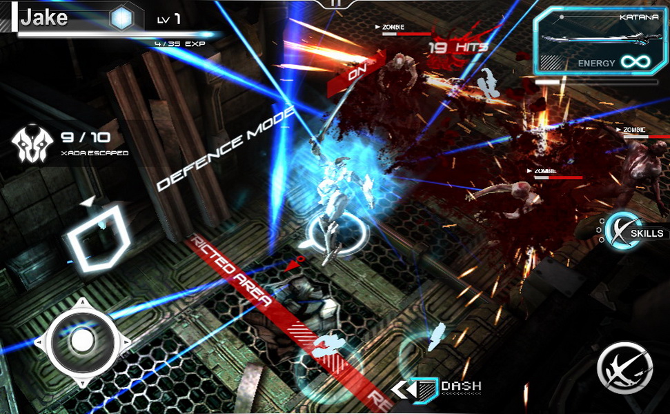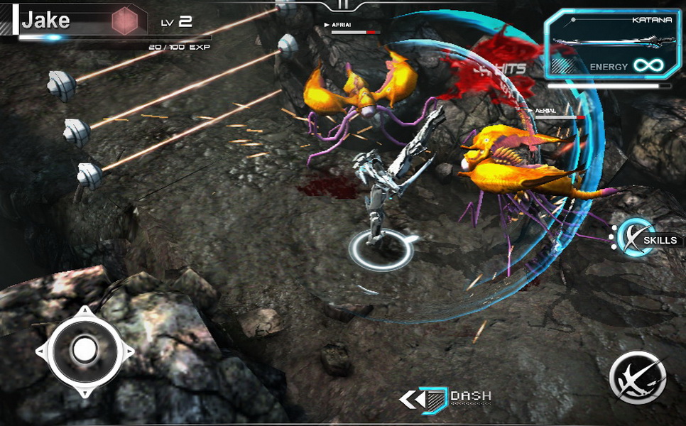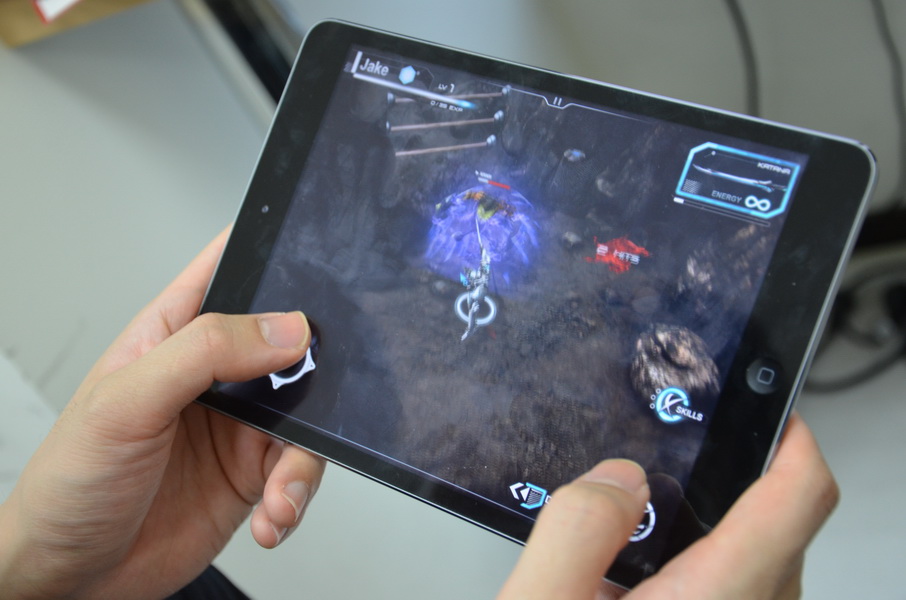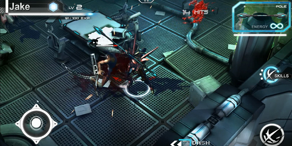 《Implosion》支援以 MOGA 外接手把操作遊玩。就實際的操作手感來說,幾乎所有的操控都有對應到搖桿的按鍵,包括如欲使用角色絕招時,可藉由右上角的 R 鈕切換介面,再利用剛好對應右側三個按鍵的絕招鈕使出招式。