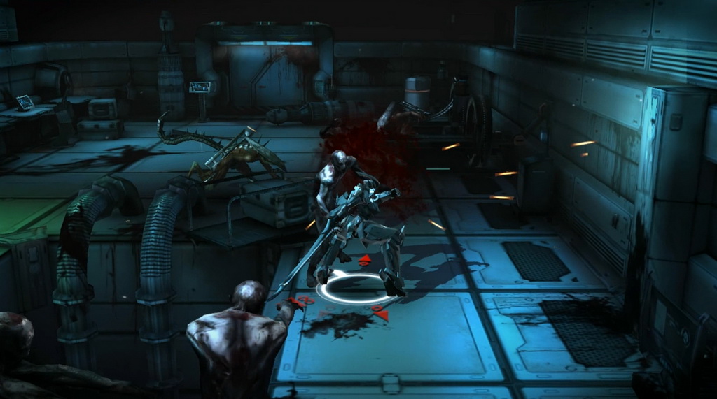 在本次 GNN 編輯試玩的版本中,有著一個相當特殊的場景,所有的物件都以稍微模糊被干擾的畫面呈現。製作人解釋這是因為這個關卡存在著干擾機器人訊號的狀況存在,因此所有的敵人都會以概略地白色輪廓呈現。而這樣的表現方式,在一定程度上可以讓玩家更加融入遊戲劇情發生的事件中。