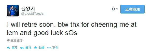 Taeja 在推特上宣布即將退役