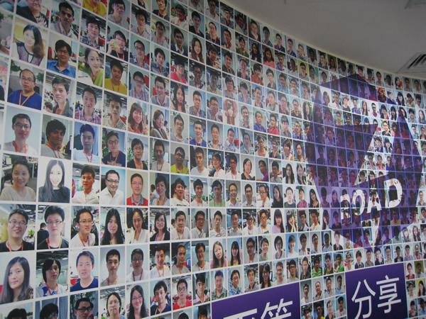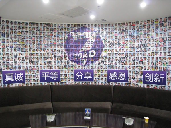 第七大道公司其一牆壁印有公司團隊的照片,如牆上語句,大家都擁有著共同的理念