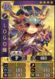 LOGO輝為神之球將。相貌堂堂,倜儻任俠。曾遠征極外異境,功成歸國後追隨神將「鋒哥」麾下,繼承鋒哥的技術與意志。現戌守北疆,與烏丸異族對抗。