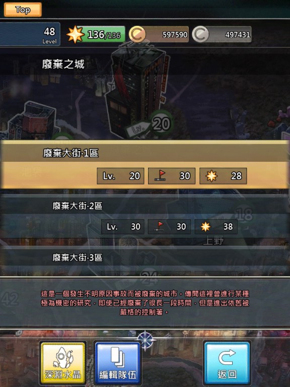 在「廢棄之城」內有強大的實驗體惡魔,當玩家走在廢棄大街上,便成了惡魔們虎視眈眈的襲擊對象,而「實驗體 S-909」、「實驗體 N-127」、「實驗體 C-509」、「實驗體 F-111」等 BOSS 則將以強大殺傷力的攻擊現身,玩家必須做好萬全準備迎戰。當成功通過關卡後,則能夠獲得附加能力點數作為獎勵,重訂惡魔的附加能力。