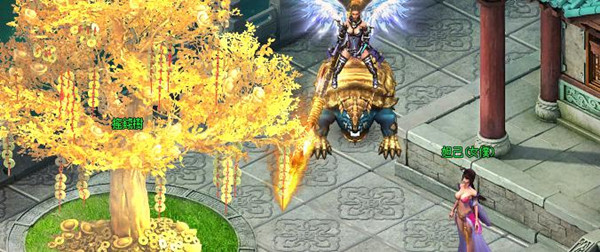 如此奢侈揮霍的生活,終歸會坐吃山空吧?看,那池碧湖邊上的是什麽?居然是一顆搖錢樹!掛滿一樹的銅幣散髮出耀眼的金光,看得旁人真是心神盪漾呀!人生如此,夫復何求!但是也不要高興得太早,如不留神,錢財就可能被他人掠走喔!
