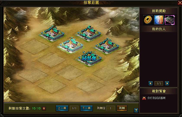 玩家達到 45 級後,可以帶領家將去掠奪別人的莊園,掠奪成功可獲得豐厚獎勵