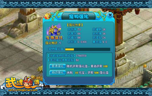 想要小夥伴更加強大,簡單的寵物合成還是不夠的,在你的寵物 30 級後,你還可以進行寵物強化,這將會使你的小夥伴發生質的飛躍。打開寵物身上的強化介面,花費少量的寵物經驗獲得強化值,強化等級提升後,寵物的抗性與成長率也會得到相應的提升。