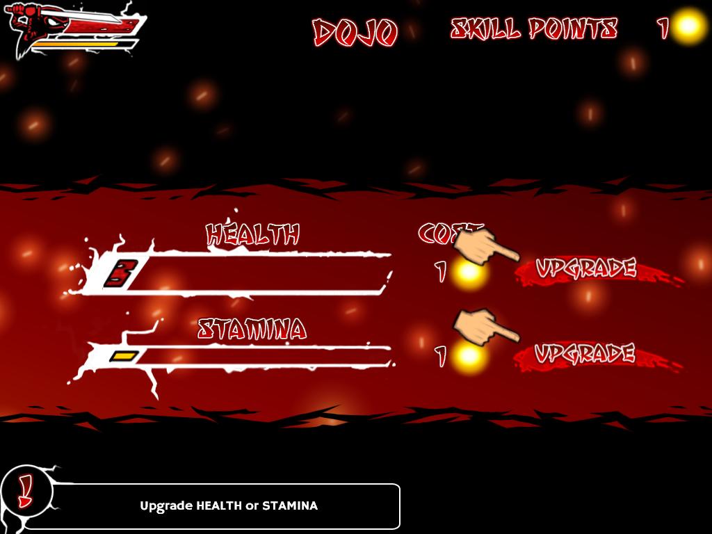 好在玩家隨著進度將可習得其他強力的技能,隨著經驗累積升級後也能提升生命或是斬擊的計量值提升能力。
