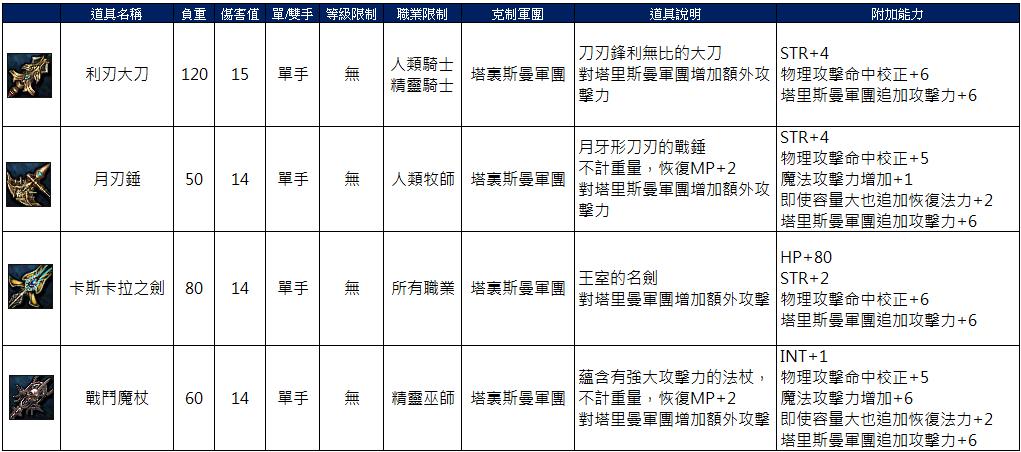 為遊俠新增專用武器為單手短劍及雙手匕首。遊俠武器特別之處在於輕巧、攻擊頻率快,能出奇不意地偷襲對方,令敵人難以防禦。高貴輕巧且銳利的短劍,尋找敵人的空隙,進而發動一連串猛烈的進攻是雙武器持有者的進攻方式,能殺人於無形。因遊俠具有極高的可塑性,希望玩家在使用遊俠時,可將這些裝備配合技能施展在強敵上。