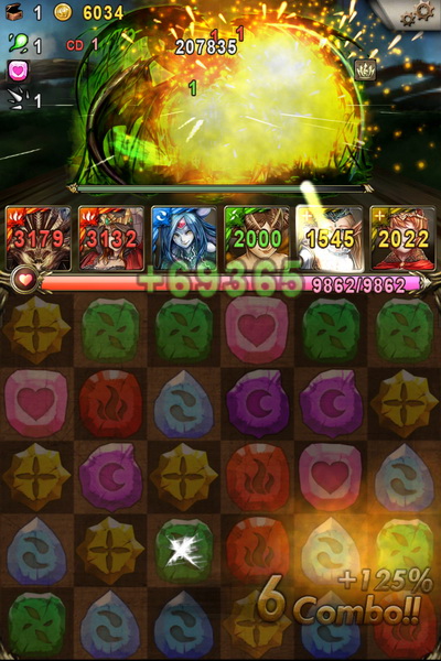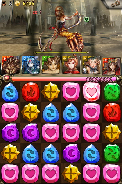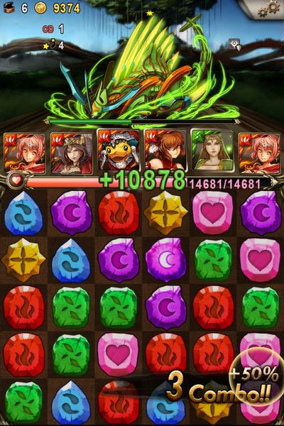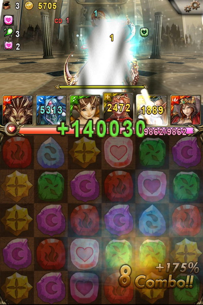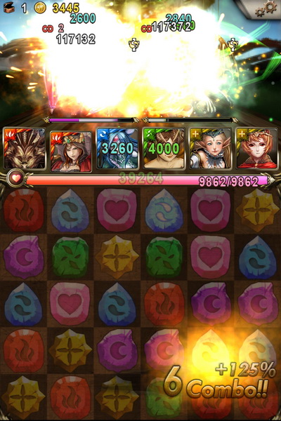 隊長技:心之連動 - 每累計消除 3 粒心符石 ,將產生 1 粒心強化符石。