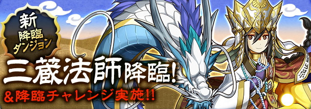 在台灣時間 4 月 12 日 11:00~4 月 14 日 10:59 這段時間內,48 小時限定的降臨地城「三藏法師 降臨!」將會出現。地城的難易度分為「超級」與「地獄級」兩種等級,限制僅有 cost 為 20 以下的角色才可進入。