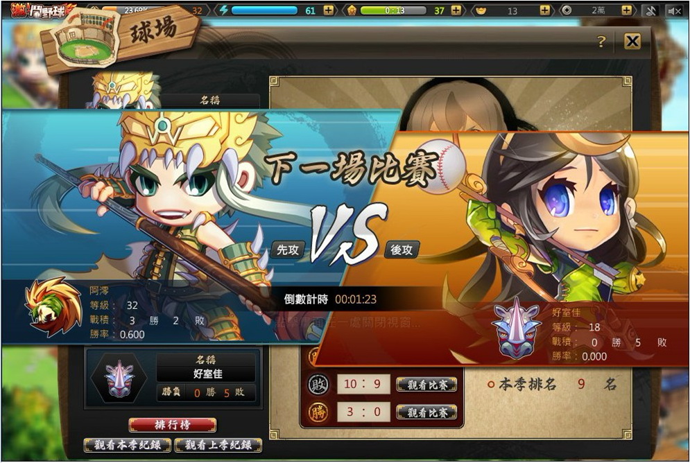 激鬥棒球魂》是一款以三國時代為背景的棒球網頁遊戲,玩家可親手打造夢幻球隊。遊戲中,玩家可透過編列球隊、強化陣容、逐步收復領土,完成一統天下的大業,並在遊戲中參加棒球盛事:季賽,實現野球魂最大的目標,獲得冠軍,打造一支永不墜落的黃金球隊。