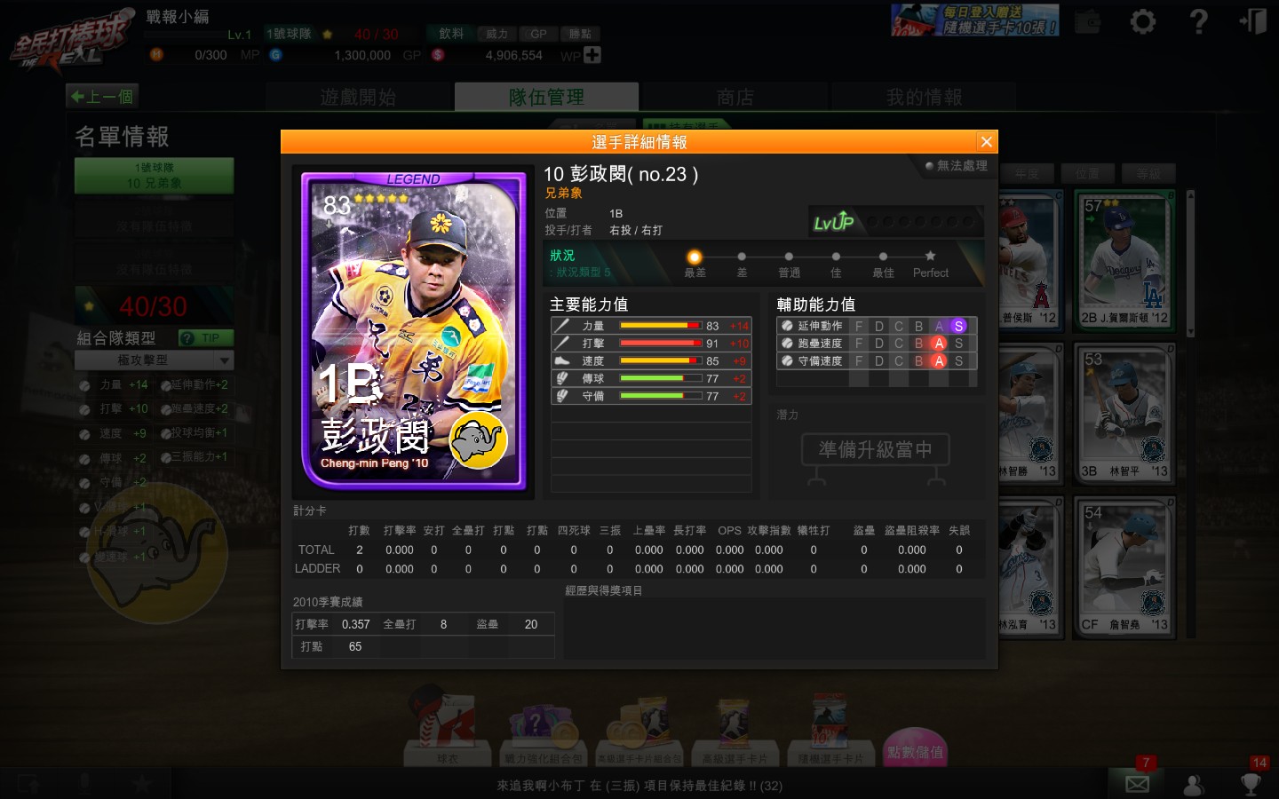 2010 年 CPBL 彭政閔「Legend 卡」爆發力十足