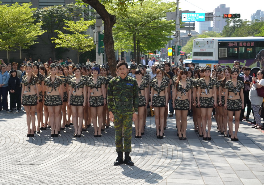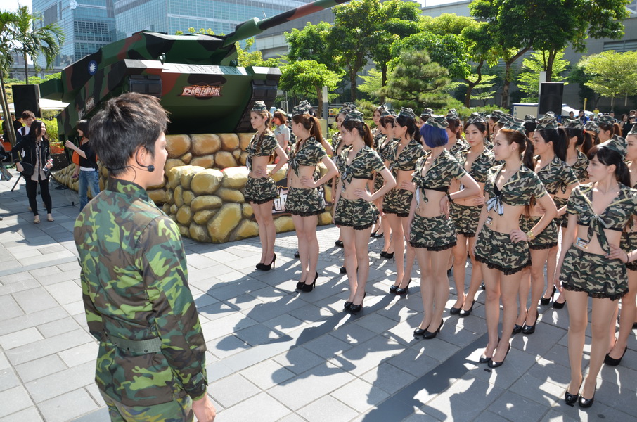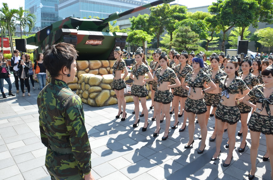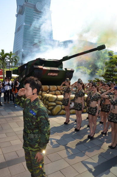 記者會中,官方特別打造了擬真的豹 2 型坦克搬至現場,同時也請來姚元浩扮演一日連長。活動中,他身著一身軍服登場,並發號口令指揮手下 50 位女兵,吸引了不少周遭民眾的目光。