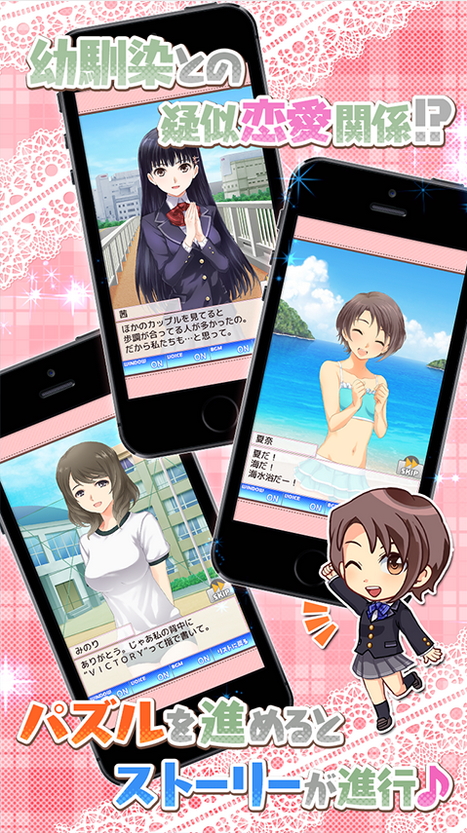 在本作故事劇情中,玩家要扮演一名居住於商店街的高中 2 年級生,擁有 3 名和自己上同一所高中的青梅竹馬。這 3 名女主角分別是清純可人的 2 年級生「綾崎茜」、活潑開朗的 1 年級生「館原夏奈(舘原夏奈)」以及堪稱商店街偶像的 3 年級生「結月稔(結月みのり)」。玩家必須要透過闖關的方式,讓主角在遊戲中和女主角發展戀情。