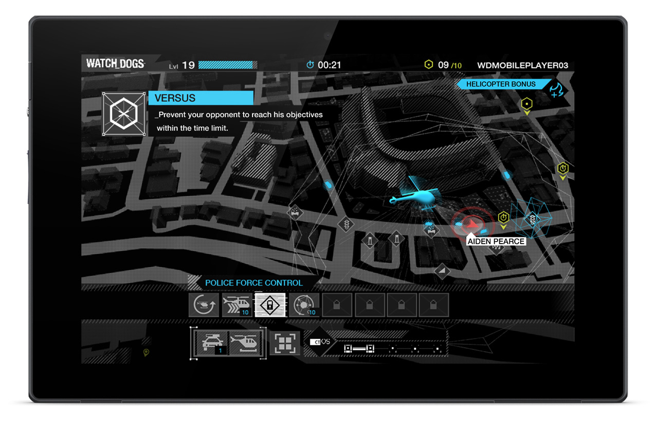 ctOS 行動版》玩家(第二玩家,2P)一起對抗警察。2P 的目標就是幫助 1P 的工作,讓他(或她)可以更輕易地躲避警察。