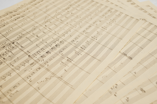 「PIANO-003」是菅野洋子在作曲時實際所使用的空譜。她對此份樂譜表示:「動畫《恐怖殘響》、單曲「花開」都是用這五線譜完成的。在維也納的古譜店中,我藉由五線的引導發現了以前作曲家所留下的譜面。腦中跑出『如果有專屬於我的五線譜紙那該有多好呢?』的想法」因此在她創造了一份屬於自己、能夠易於作曲的五線譜紙。為了向以前的大師致敬,因此採用了手寫、帶有古風的形式。