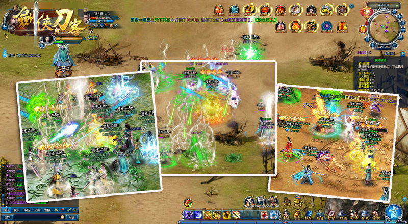 劍俠與刀客》中設計了能展現個人實力與操作的武林爭霸(個人擂臺賽),以及規模龐大的襄陽戰場(陣營賽),還有考驗團隊配合與指揮的群雄問鼎(幫會戰),玩家可在這些活動中盡情的享受 PK 的樂趣。往後我們還會開發各種更大型跨服戰役,敬請期待!