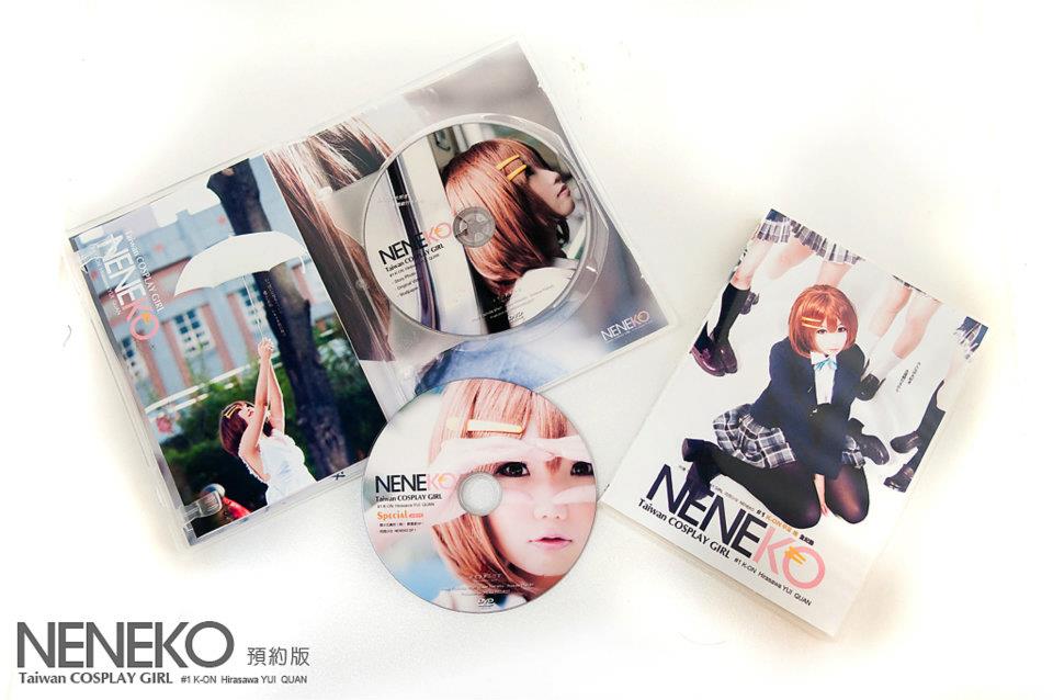 Neneko:我發的第一片 Cosplay 同人寫真影像 DVD-ROM「台灣 Taiwan COSPLAY GIRL~肉感少女 NENEKO~#1 K-ON平澤唯 全紀錄」。網路上公開 3 連彈宣傳影片與放課後特別篇影像,ROM 內容有動態劇情影像、寫真、心情日記。這個企劃規劃大約 1 年多,但是製作時間短短 3 個月左右,製作期間幾乎每週都在拍攝,為了呈現更完整的故事劇情,大多照片並不是一次拍完,而是跟團隊一次又一次拍攝收錄才完成。覺得自己都快像櫻丘高中的學生,一大早起床就要穿制服去上學(笑)。