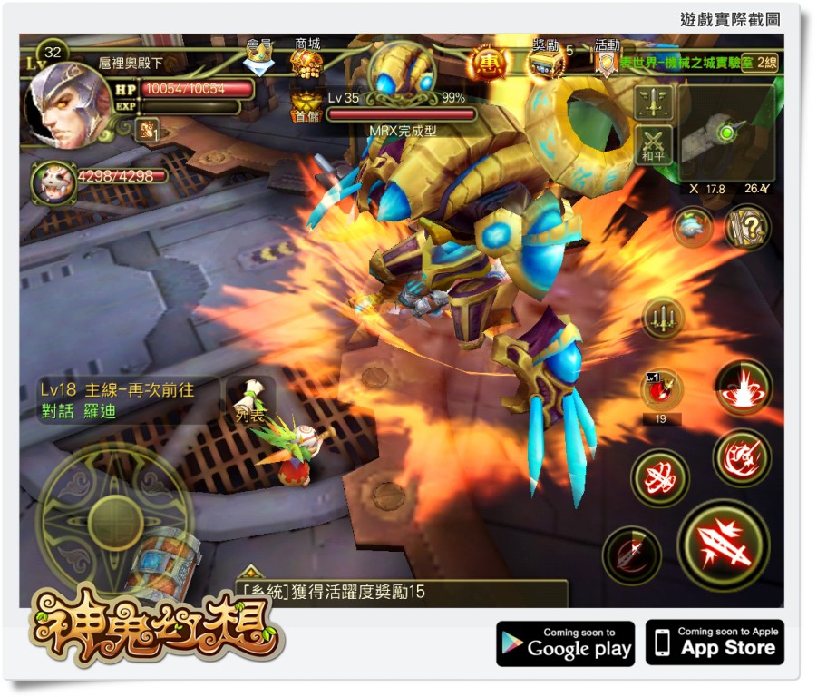 充滿冒險旅程的《神鬼幻想》,在奧爾賽大陸的廣大地圖中暗藏多處不為人知的驚奇挑戰,遇上攻擊力強大的猛獸強怪更是無可避免!世界 BOSS 中,有著龐大身形、厚重堅硬外殼的巨型人機器「MRX」是眾多 BOSS 中不可小覷的強者之一,而 MRX 依照攻擊力分成:強化型、完成型、甚至還有失控的 MRX。這些被科學天才製造出來的神祕殺人機器威力強大,在 MRX 系列的機器人中,擁有黃色外殼「MRX- 完成型」相較於「MRX- 強化型」顯的靈活許多,玩家在面對「MRX- 完成型」時也相對帶來更多挑戰性。