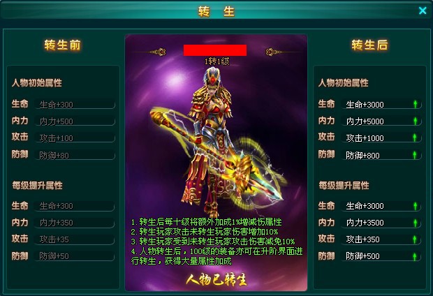 (3)轉生玩家受到未轉生玩家攻擊傷害減免10%。
