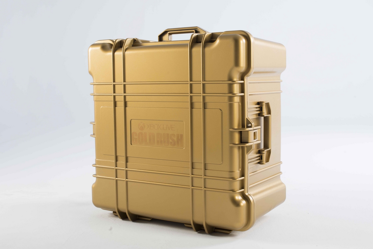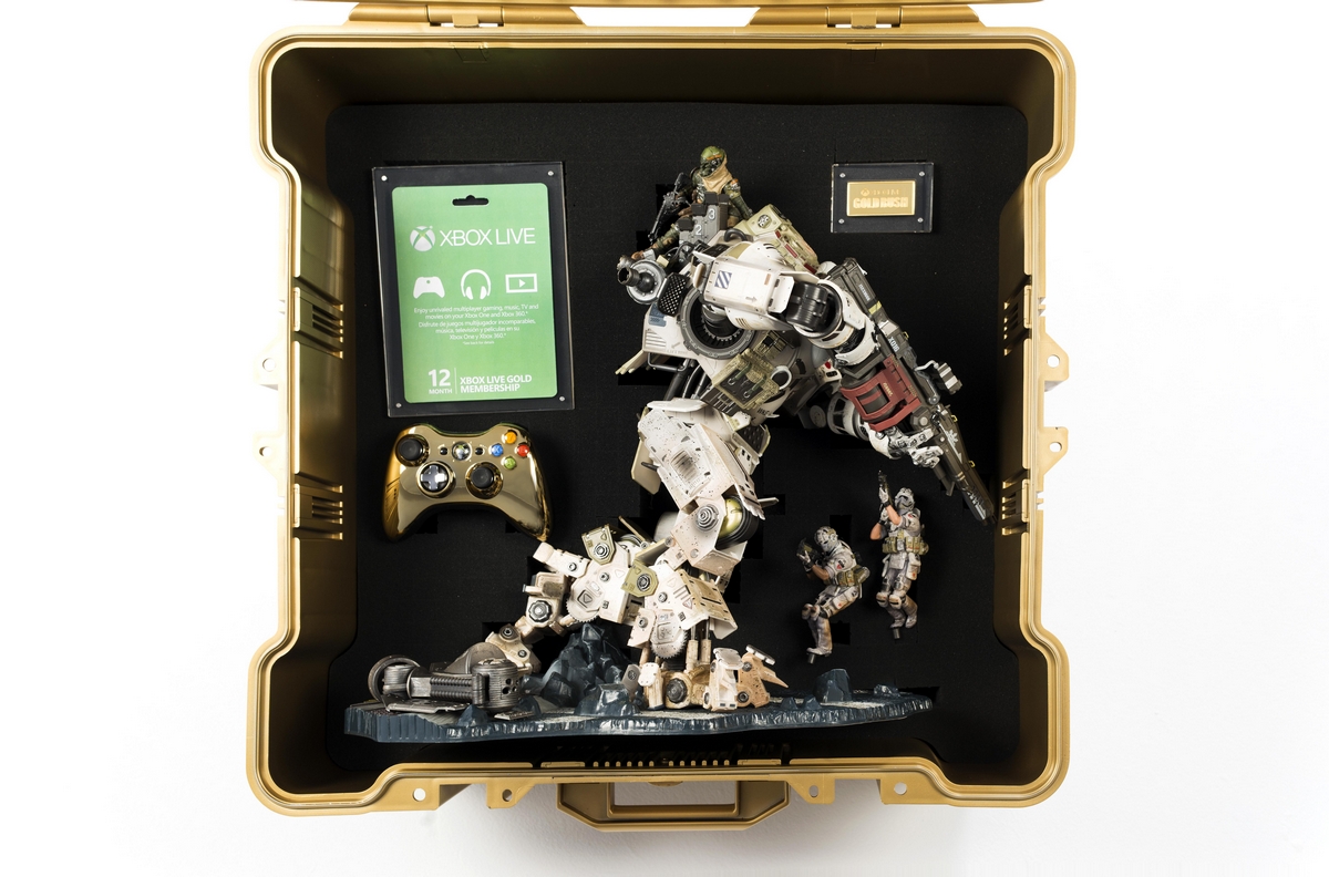 寶箱內容包括一只 100 克 99.9999 純金 Xbox Live 淘金熱紀念金牌、限量《TITANFALL》模型組、Xbox 360 特別版金色控制器,以及 12 個月 Xbox Live 金會員
