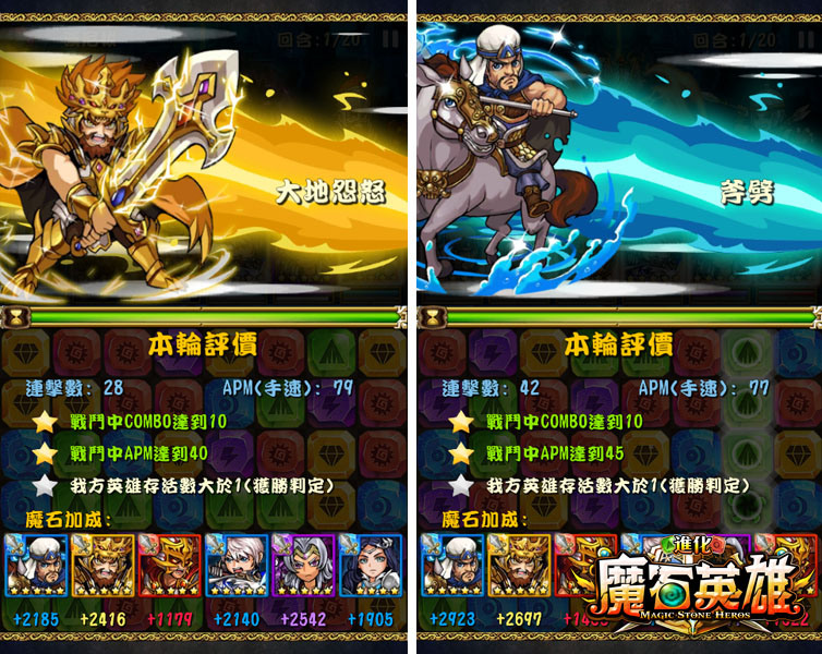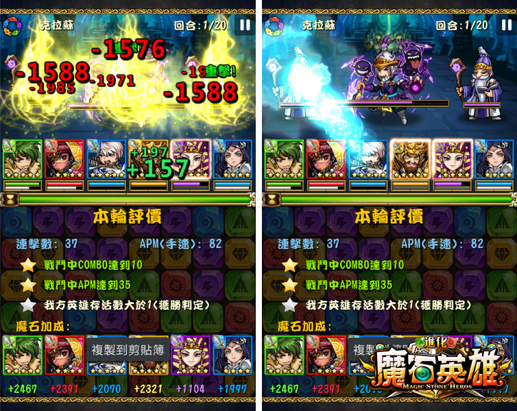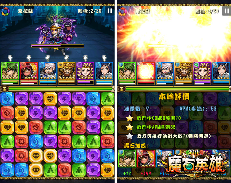 攻擊模式下,魔石消除可以為英雄的下次攻擊帶來額外加成,