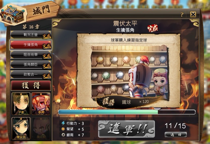 「城門」系統讓玩家們能夠體驗有趣的劇情和章節探索,並且可以隨機獲得各種資源和事件獎勵!週日限定「城門進軍」球、銀兩獲取量提高,讓各位君主可以隨時存球抽神卡、存錢強化神將喔!