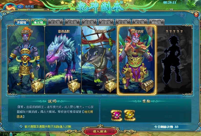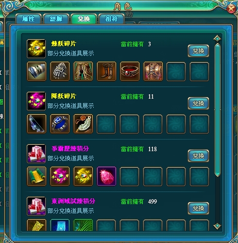 而稀有的「降妖碎片」、「煉妖碎片」,在乾坤副本中更可透過與副本 BOSS 的戰鬥輕易取得,集滿一定數量後,可直接至『角色→兌換』處兌換適合自己職業的金色裝備。