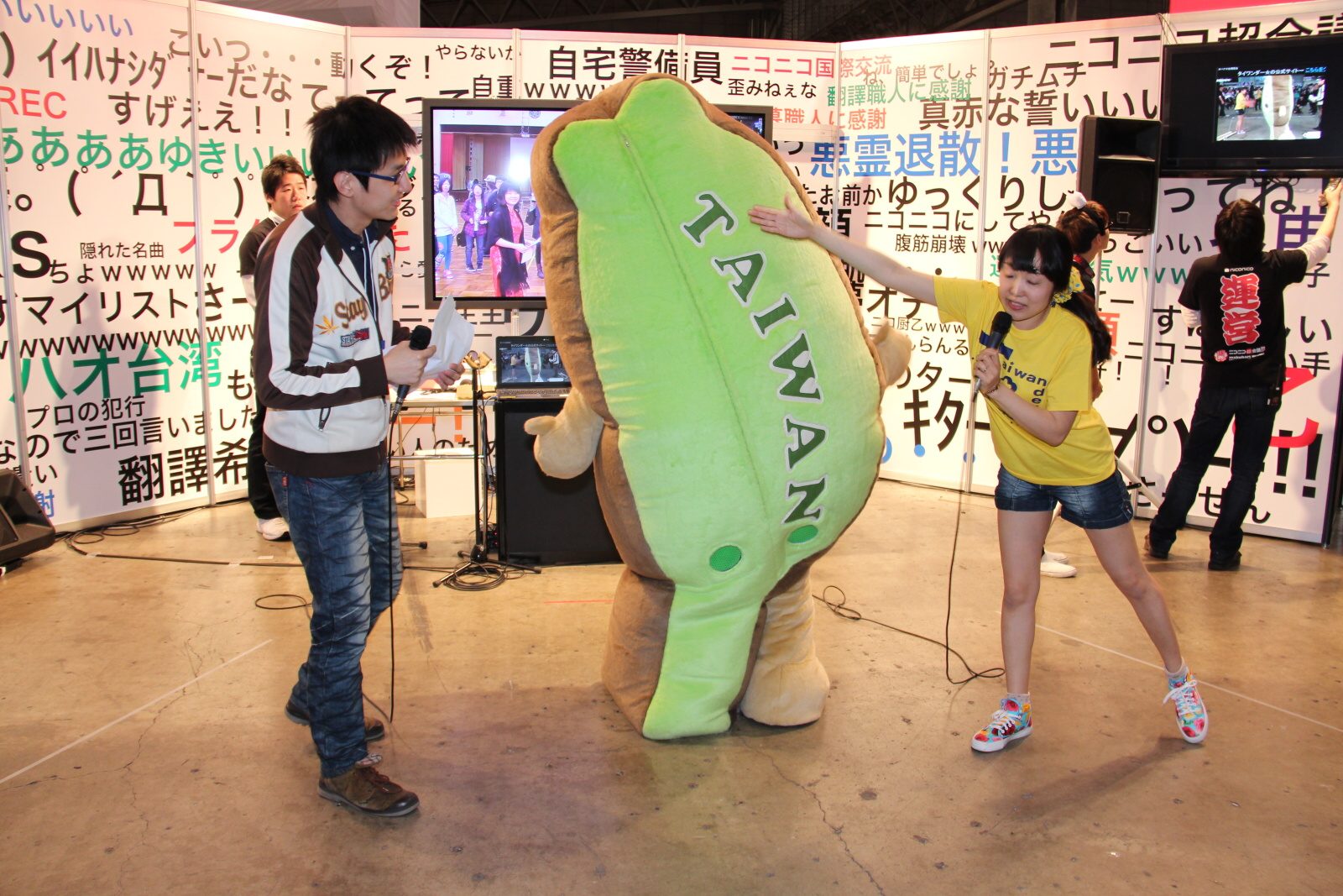 上週末在日本舉行的 NicoNico 超會議 3 中,設置了「超你好台灣(超ニイハオ台湾)」區,並且與台灣師範大學公館校區中正堂舉行的 NicoNico 台日交流會跨國連線,活動現場請來日本超人氣非官方角色「船梨精」、任天堂經典角色「瑪利歐兄弟」,以及台灣吉祥物「台灣達(タイワンダー☆)」與大家互動。並且設置台灣小路專區,讓日本民眾了解台灣各式各樣的一面。