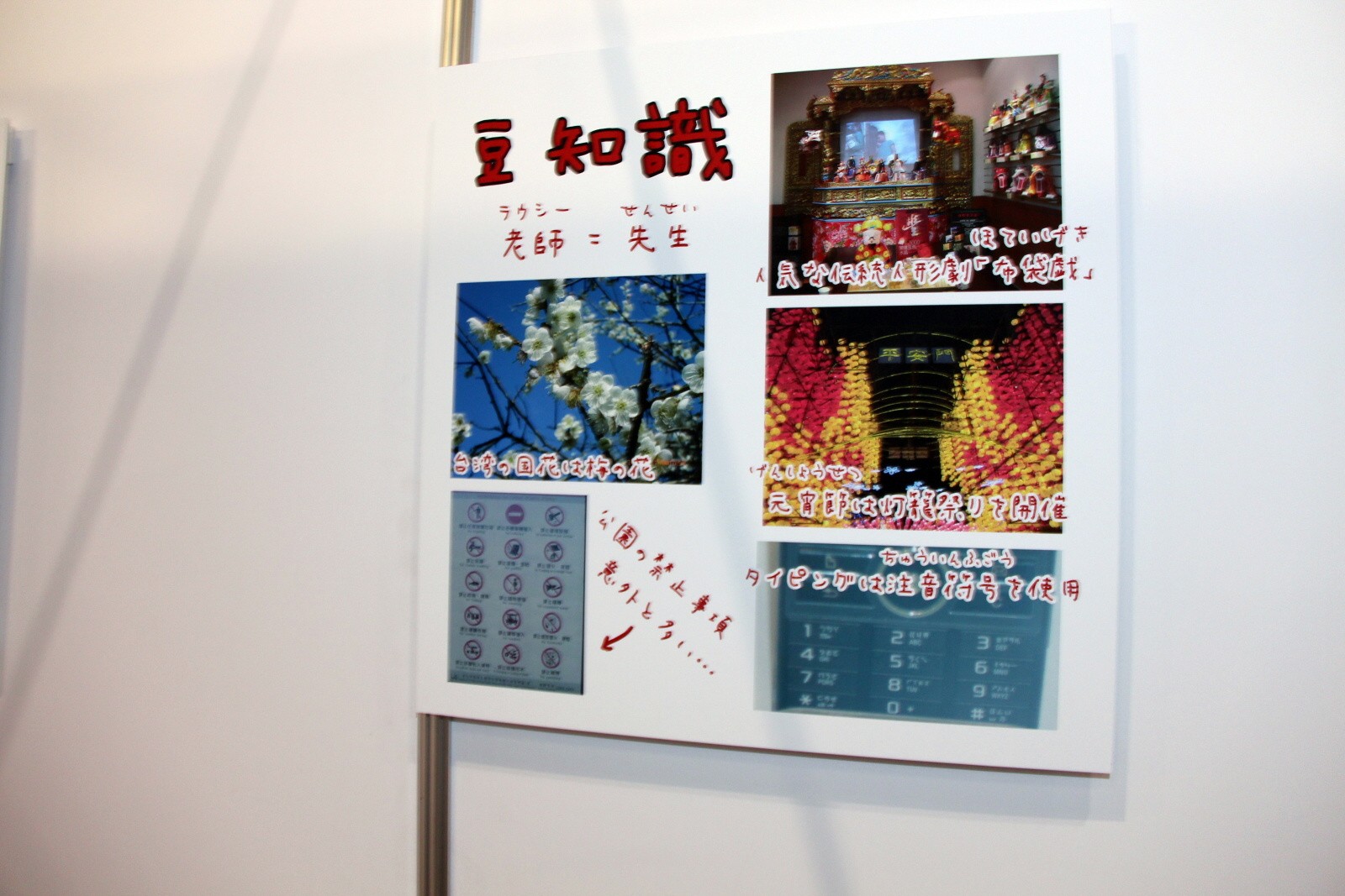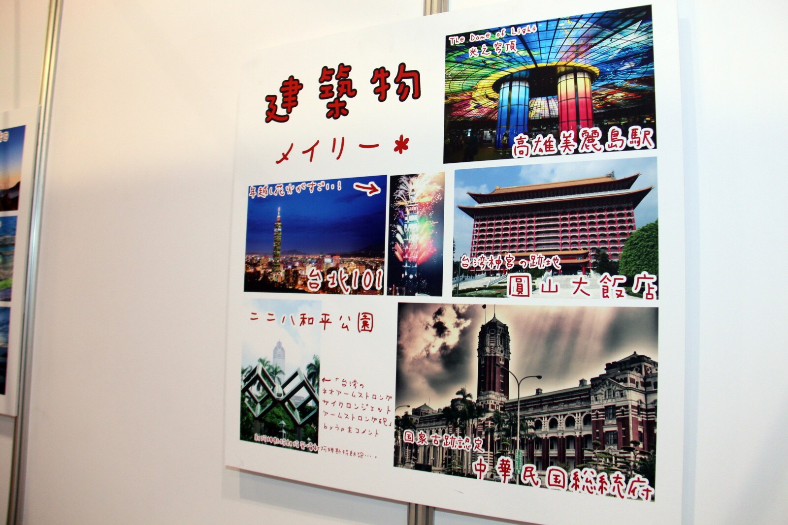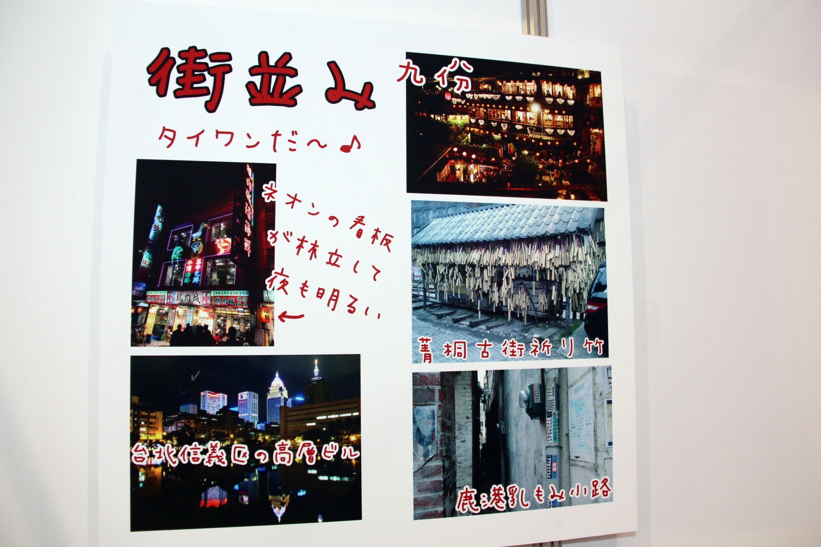 除了台日實況交流活動外,會場特別設置了「台灣小路」專區,專區內展出先前在「想介紹給日本人的『台灣』照片」活動中,由台灣人投稿並且獲選的照片,以台灣人的角度向日本人介紹台灣有趣及富含特色的一面。