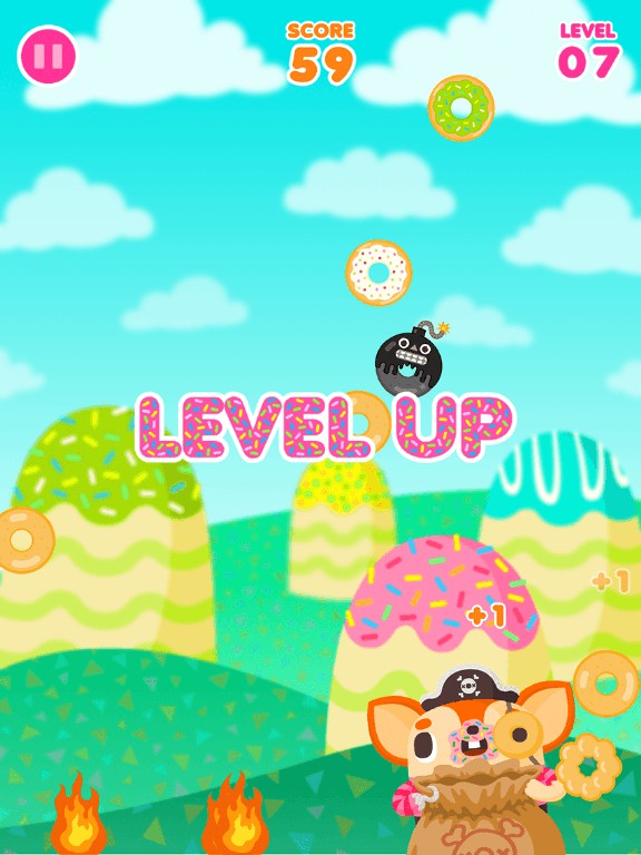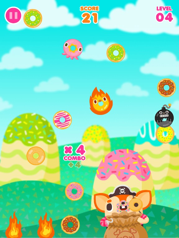 》是一款簡單又具有挑戰性的小遊戲,玩家要操控一隻貪吃的吉娃娃 -Donut Pirate,幫牠接住從天而降的甜甜圈,同時要閃躲炸彈、火焰、烏賊甜甜圈等障礙物。玩家能在這緊張刺激的甜甜圈世界裡生存多久,拿到多少甜甜圈?