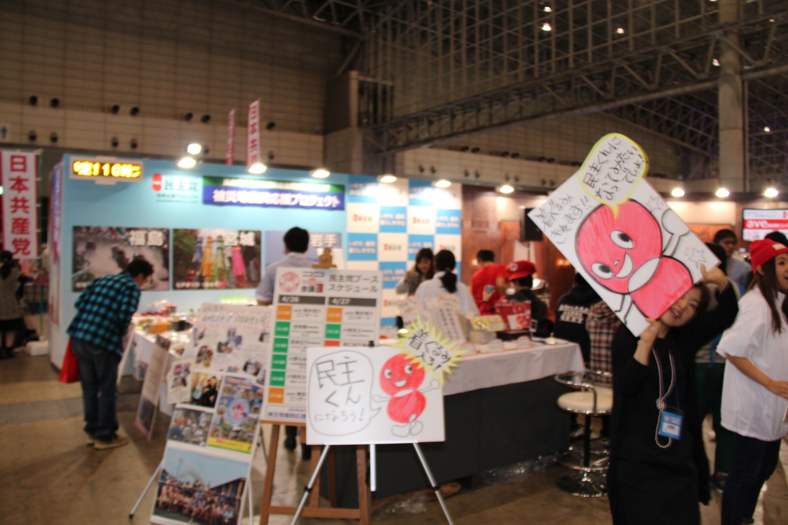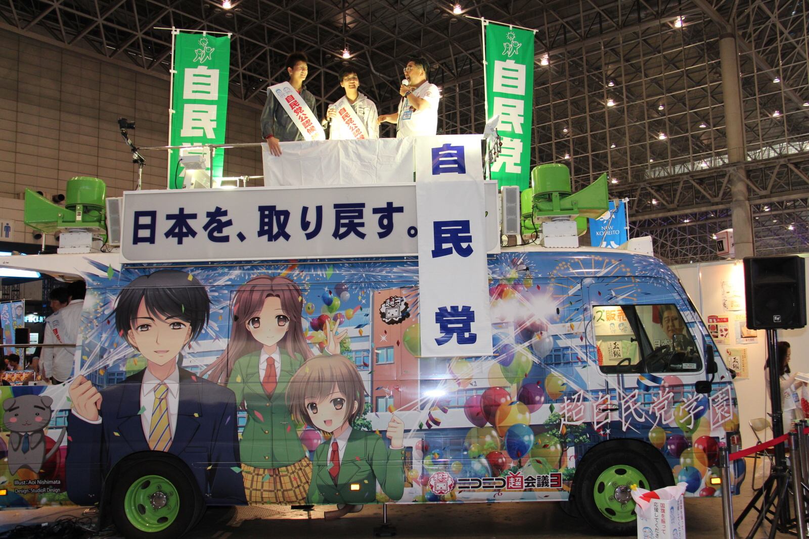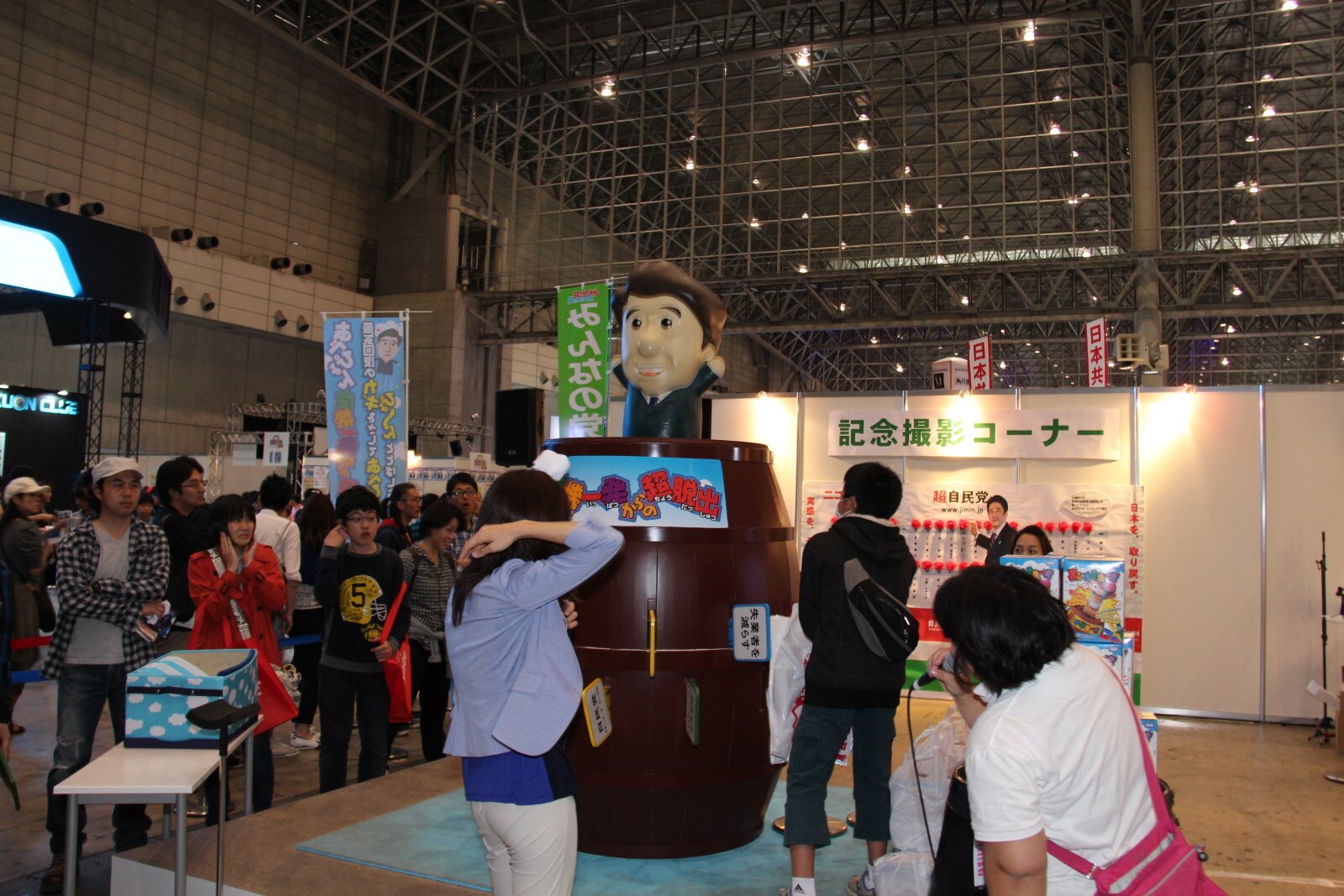 在入口處的展區 1 至 3 主要為企業、遊戲、政黨以及超 Cosplay 專區。除了物品販賣、商品展出、舞台活動外,超遊戲區域可讓玩家間交流,而政黨專區則是祭出安倍危機一發或者是痛競選車等逗趣設施吸引目光。