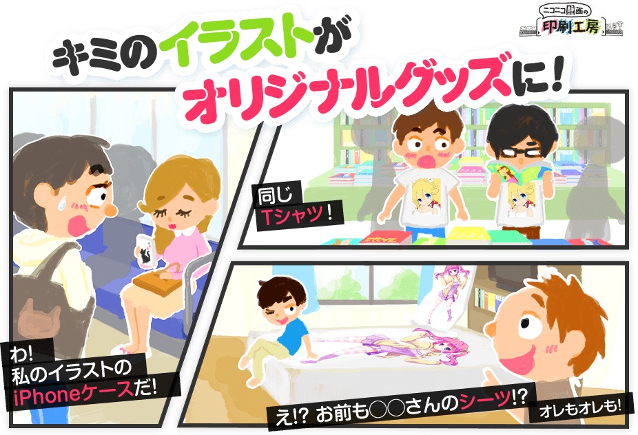 關於獎勵創作者的部分,NicoNico 生放送以及 NicoNi 立體也將列入獎勵內容,截至目前為止已經有 11 位創作者獲得超過 1 千萬日圓的獎勵,獲得 500 萬以上的創作者也有 18 位。此外,針對創作者的部分,官方預計將於 5 月 1 日起推出全新服務「NicoNico 靜畫 印刷工房」,當民眾在靜畫區看到心儀的作品、而創作者有將該部作品登錄到印刷工房時,就可以選擇把作品製作為 T 恤、手機殼、抱枕等週邊,並且寄送到家中,其中商品 10% 金額會播給創作者作為收入。