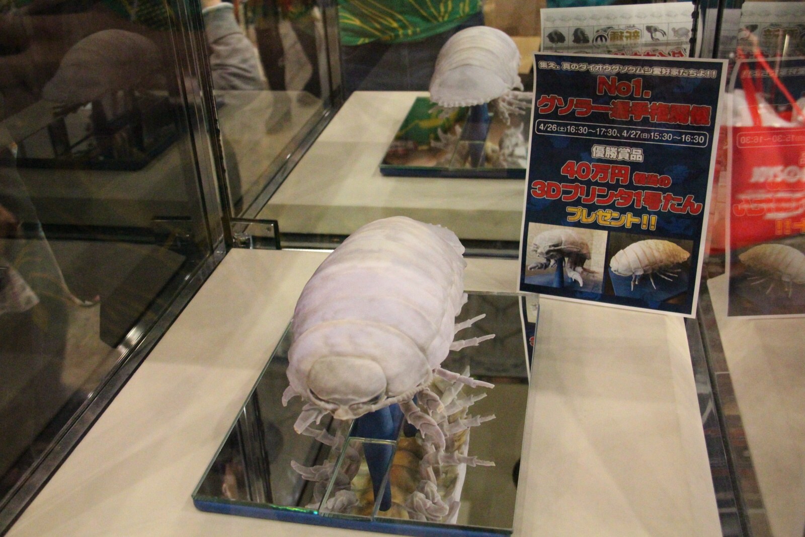 展場中較為特殊的攤位莫過於「超大王具足蟲」區了,現場除了可讓民眾穿上超大王具足蟲的布偶裝拍照留念外,還展出了以 3D 印表機製作出來的大王具足蟲 1 號模型,以及各是以大王具足蟲為主的週邊商品。