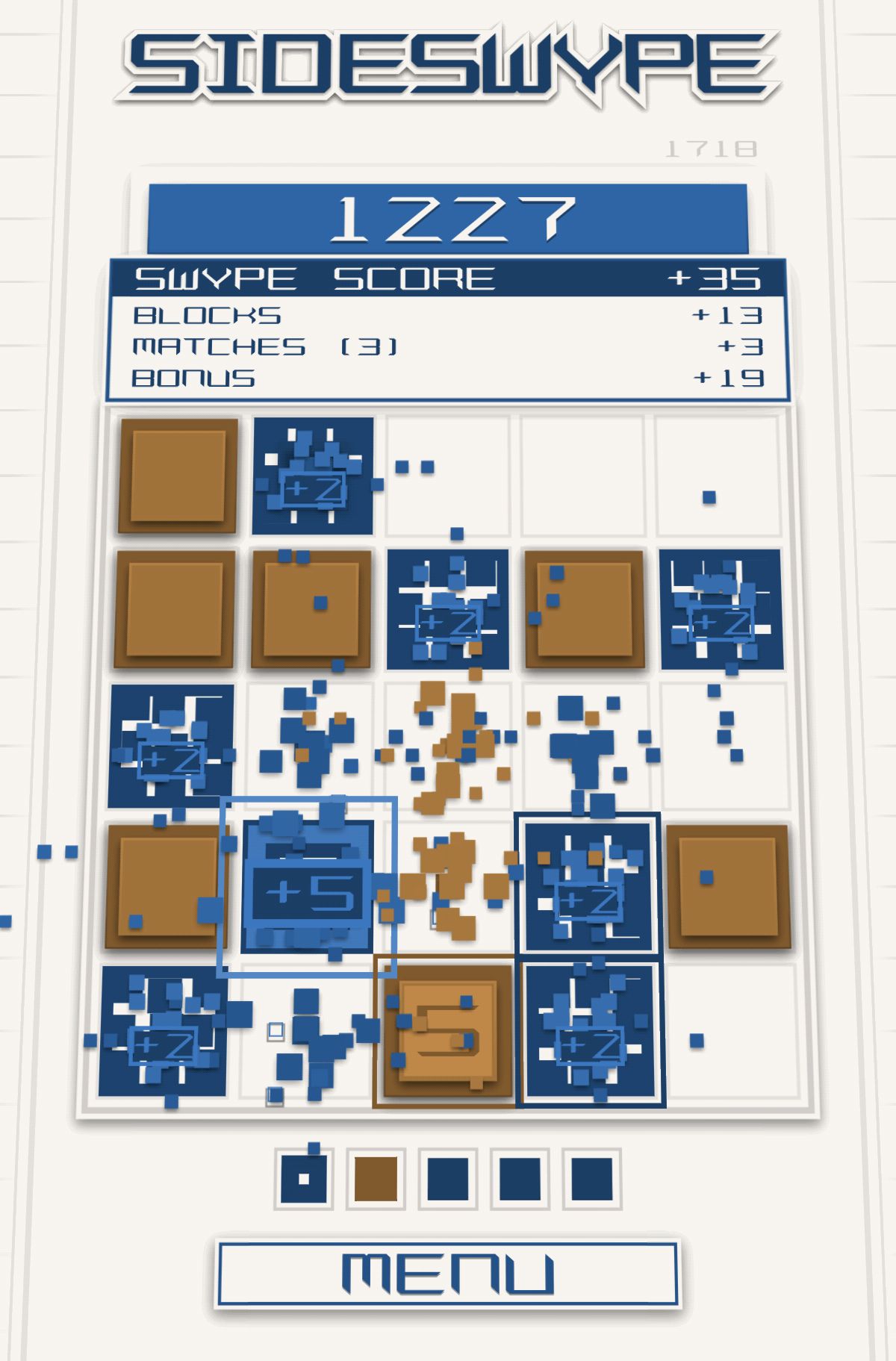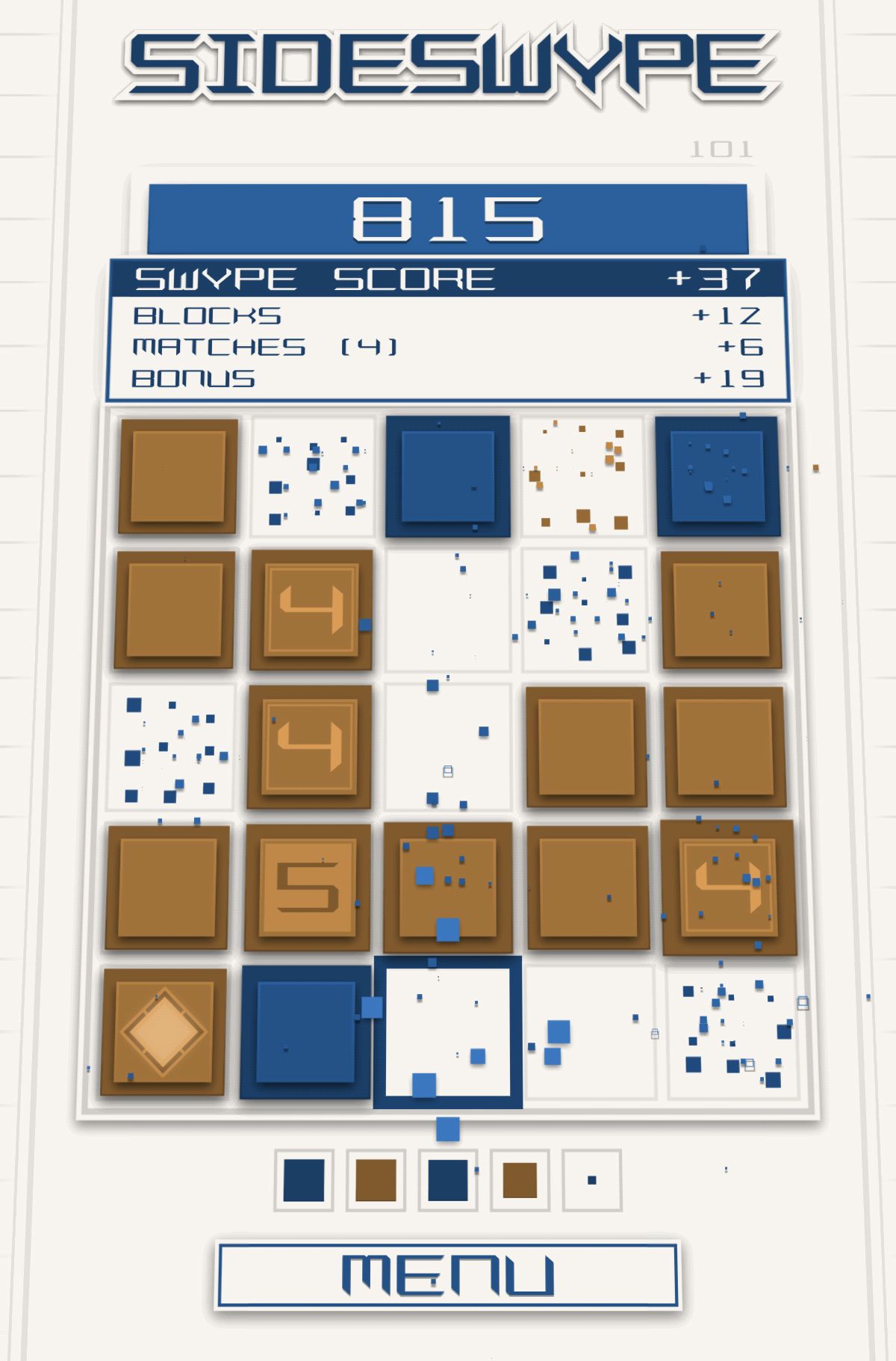 兩種特殊方塊都有很棒的效果,當玩家消除菱形圖示的方塊時,會使周遭的方塊一起消失。而格子符號的方塊則是可以讓棋盤上同顏色的方塊全部消失,在緊急時真的有很大的幫助!不過要是刻意留太多「5」的數字方塊時,偶而也會陷入危機喔,適時的用菱形方塊來消除位置不好消除的數字方塊也是一種作法。