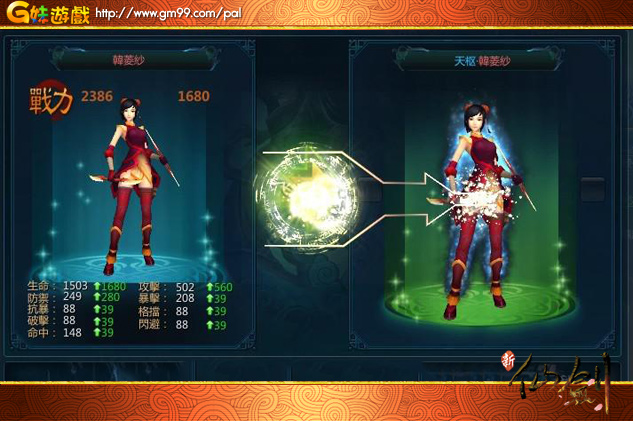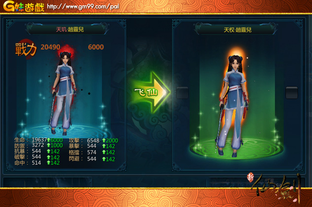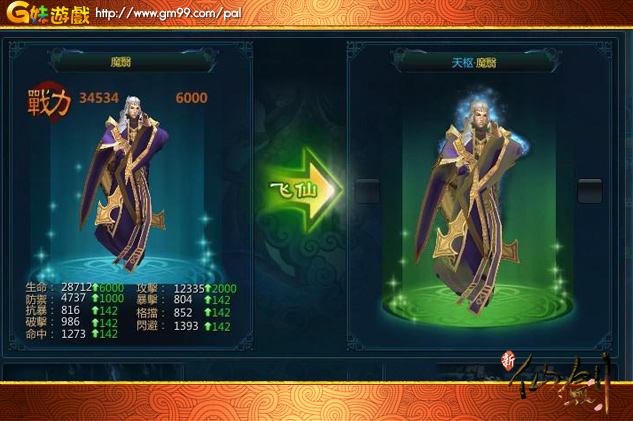 在昔日的進階模式中,仙劍夥伴們透過吞噬金蠶王和信物碎片,進行升級進階的方式已經Out啦!在即日開啟的新版本中,少俠可透過幻化飛仙,對主角和夥伴進行肉身重塑,從而獲得全屬性大幅度提升,同時名字顏色與外貌形態也會發生相應的變化。