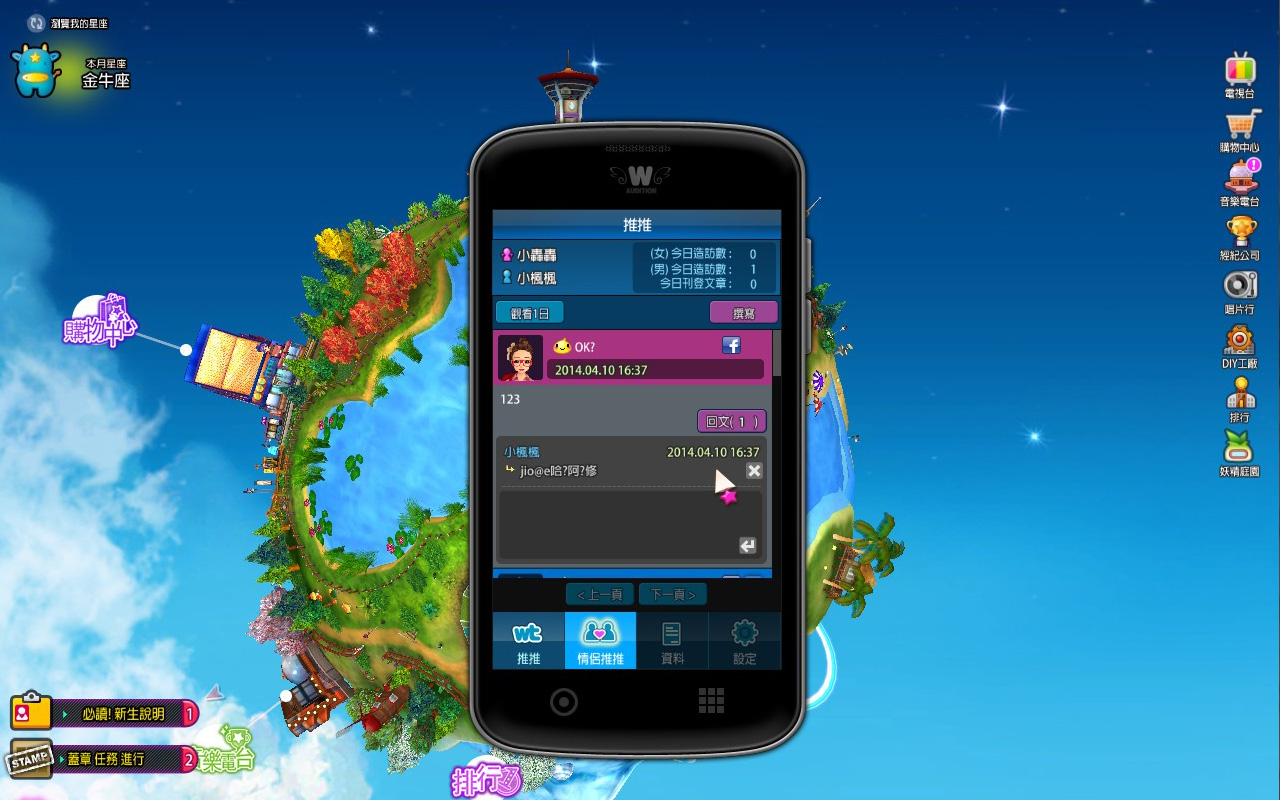 推推 - 利用 WIA 專屬的推推系統向眾人表達每日心情,也有情侶專用推推。