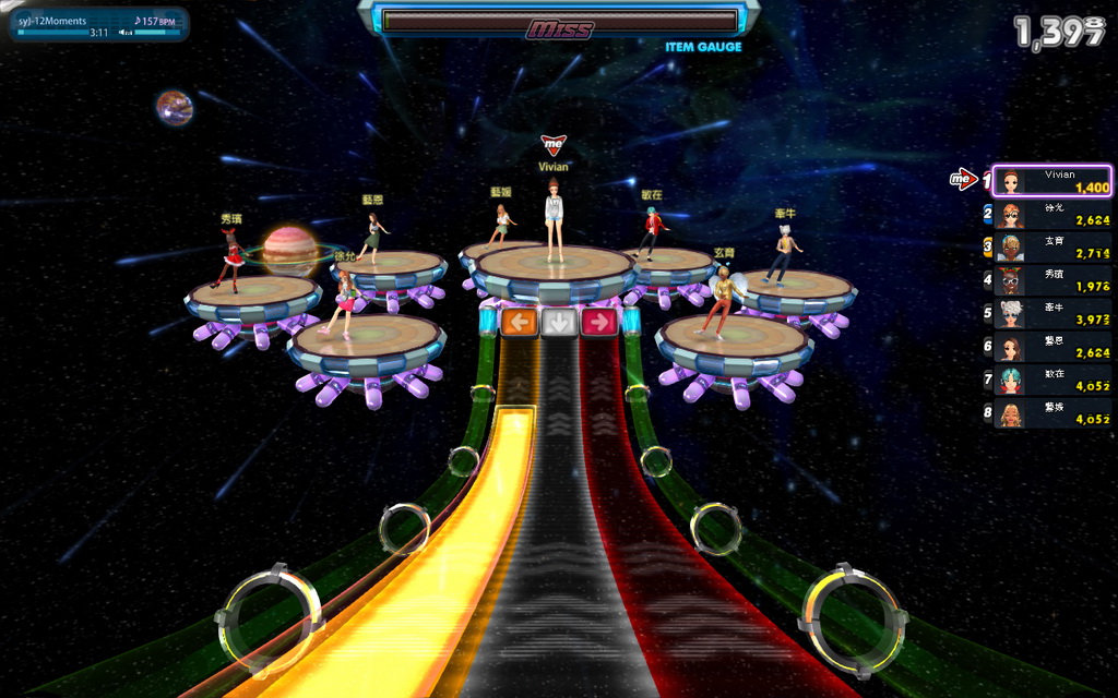 星際舞台 - 具新的節奏韻律難度,高速音軌飆出人體極限,類似吉他英雄的方式,但採用反方向呈現。