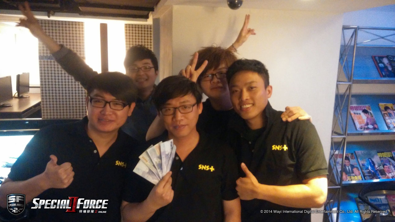 《Special Force 2》「全台菁英盃網咖自辦賽」上週日 (5/4) 於哈哈活力站網咖忠孝店舉行,現場 6 支隊伍經過一番激戰後,由 SNSplus 獲得冠軍,亞軍則為 PTMm,分別帶走 5,000 元和 3,000 元獎金,以及 QBZ-97(30 天),其中冠軍隊伍 SNSplus 也獲得加碼的猛獸 AK103(永久)槍枝。