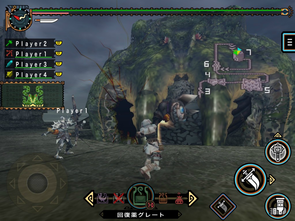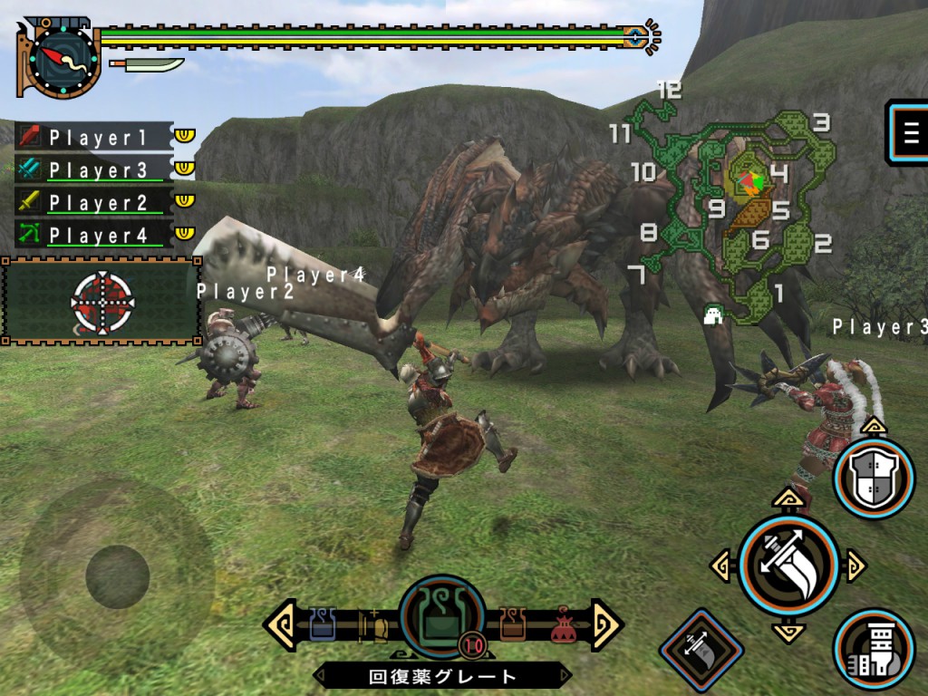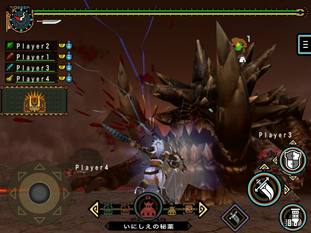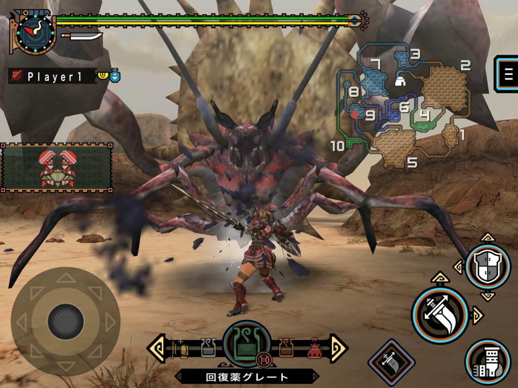 魔物獵人 》時沒有甚麼兩樣這點著實讓人感到驚訝。雖然是觸碰操作,但絕對不是輕鬆點擊幾個按鈕就好,而且在遊戲畫面上真的有了相當程度的進步。