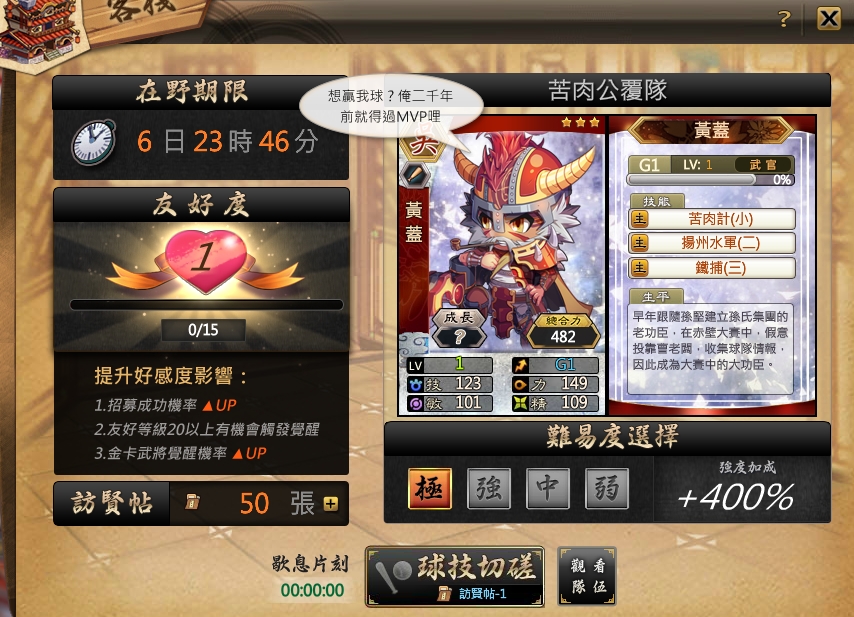 玩家可在「名將聯賽」中挑戰知名戰役,當難度越高獲得的