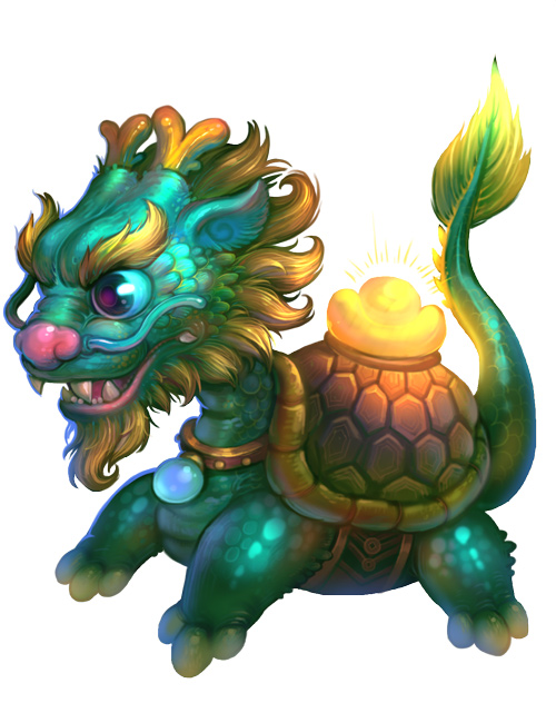 作為螭吻的大哥,龍龜可是相當溫順的神獸,因此個性溫順且背著大元寶的它,被認為是辟邪鎮宅和招財進寶的象征。不過這樣富貴十足的神獸,當然會引起許多妖魔的覬覦,希望它能被主角們順利搭救吧!