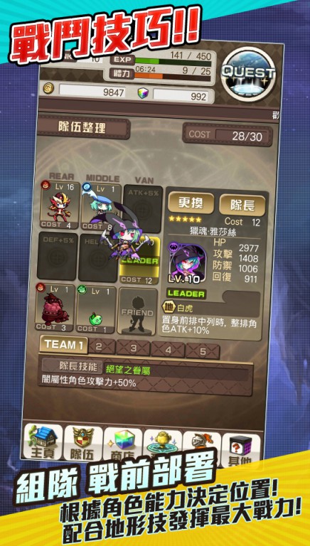 據官方表示,遊戲除了採用方便單手操作的單擊控制設計外,亦有 9 格陣型的策略玩法,面對不同敵人,就要採取不同的陣式。遊戲中每位行使均有自己的守護屬性,作品內會有超過 200 名角色登場。