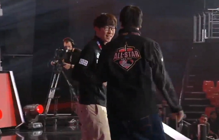 英雄聯盟》2014 巴黎全明星賽今日進行最後一天賽事,一開始先進行由玩家票選的選手對決的 1 對 1 與 2 對 2邀請賽,比賽規則是只要任一方成功殺死對方一次(二對二是各殺一次對方),或是推倒一座塔,或率先吃下一百隻兵就算勝利。