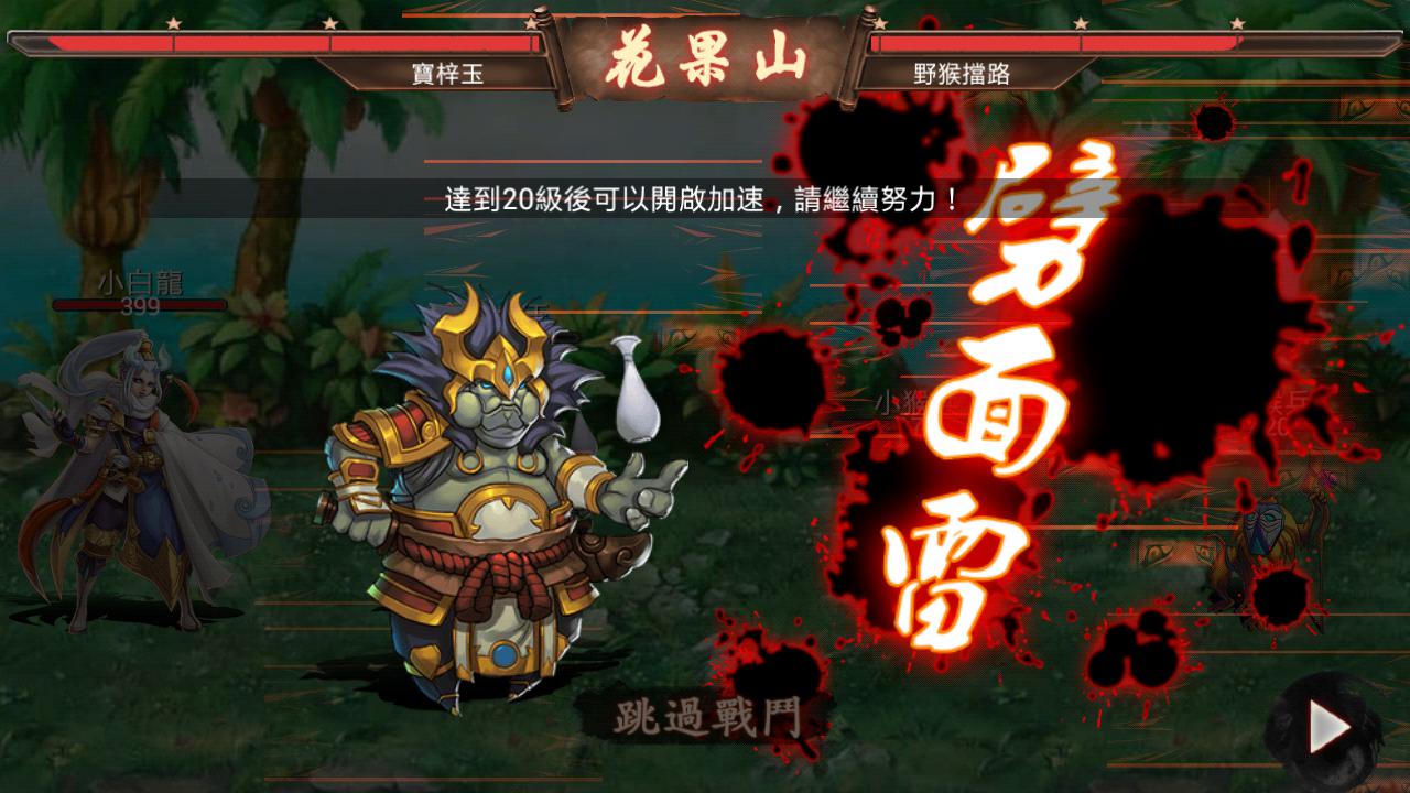每個關卡裡又分成許多小關卡,開戰前都可先看到挑戰成功的獎勵;值得一提的是某些小關卡名稱很直接,例如蝦兵蟹將、不自量力、野猴擋路、再多也無用…等,聽起來亂沒氣勢的 XD 或許這也是本遊戲幽默之處吧!