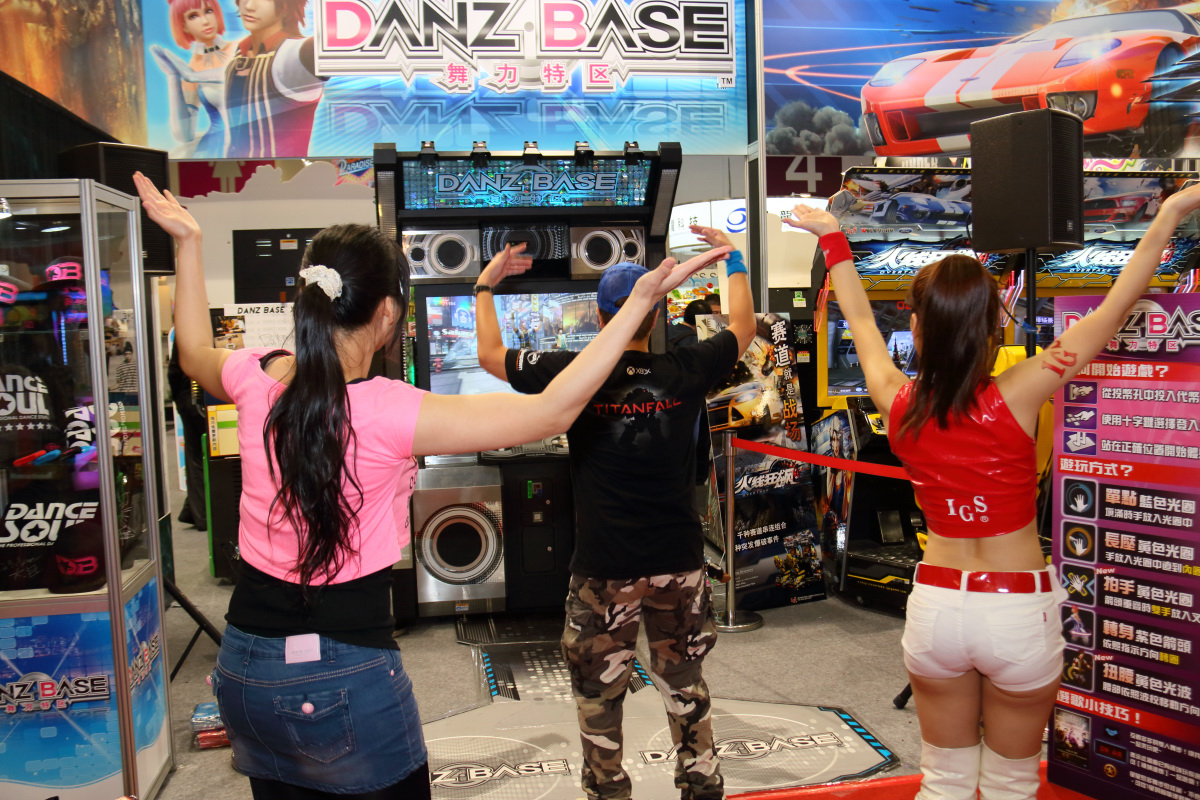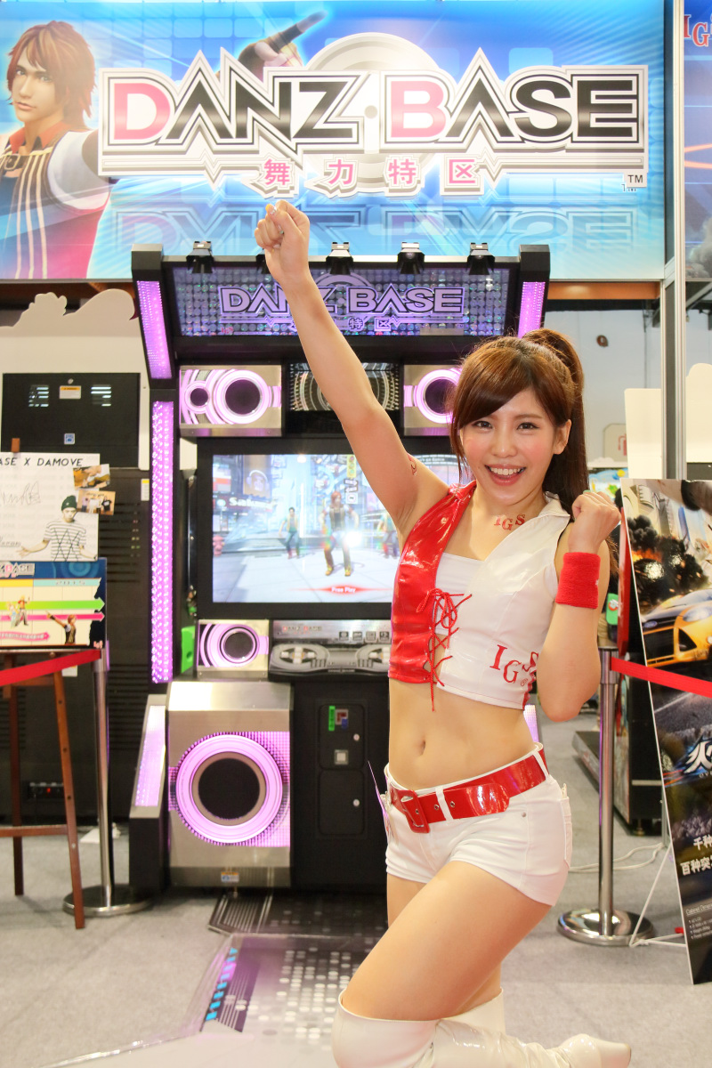 舞力特區 》為首的自製大型電玩遊戲產品,現場還請到性感 Show Girl 親自示範指導。