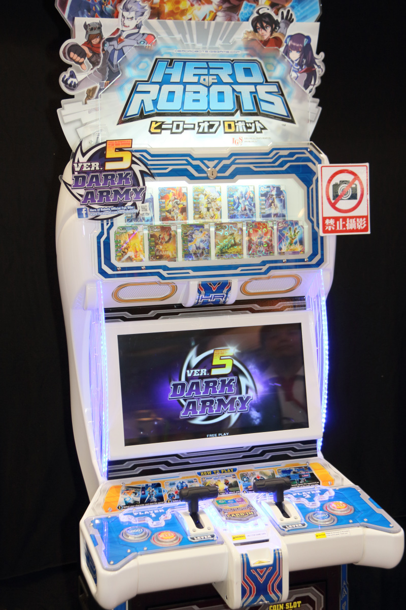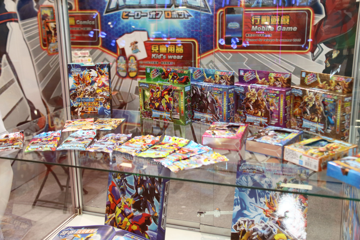 機甲英雄 》是鈊象電子與經濟部工業局合作開發的卡片遊戲機台,針對 6~12 歲的小學男生族群量身打造,以機器人為主題,融合英語教育學習性。目前已經行銷台灣、中國大陸、東南亞與義大利等地區。不止遊戲作品,還與友善文創旗下新銳漫畫家惟丞&好面合作在青文「快樂快樂」月刊連載改編漫畫,現場還展出拼圖、紙模型、桌上遊戲與公仔等周邊。