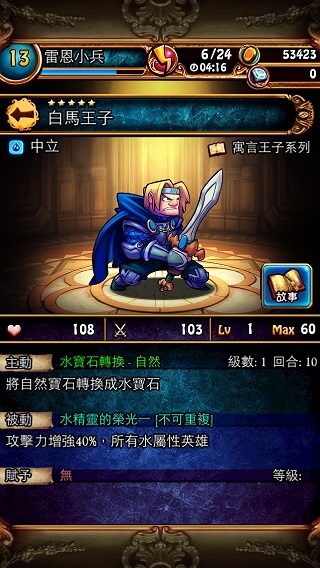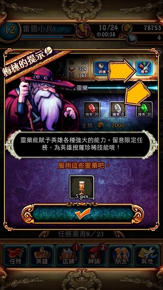 角色培育方面主要都是依靠寶物與藥水來提升等級與屬性值,每一位英雄角色能夠使用的藥水寶物次數都有上限,而藥水寶物也有分等級,越高級的藥水寶物增加的數值越高,因此星星數較高的英雄角色建議使用高級的藥水寶物;另外一個培育系統是在日系遊戲較常見的技能升級,以一名擁有相同主動技的角色作為材料提升英雄角色主動技的等級,能讓英雄角色脫胎換骨的進化系統在《