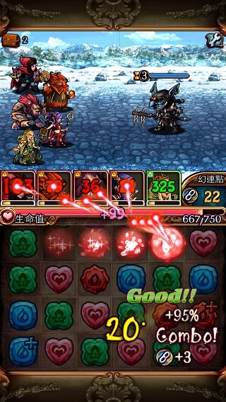 寓言戰記》比較類似《POKOPANG》以手滑連線的方式直接串消畫面上的同色寶石,相較於《POKOPANG》蜂巢式六方向串連,《